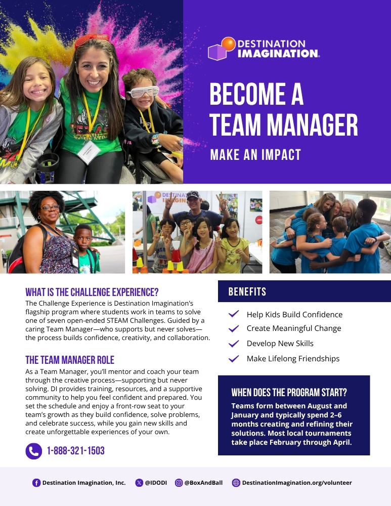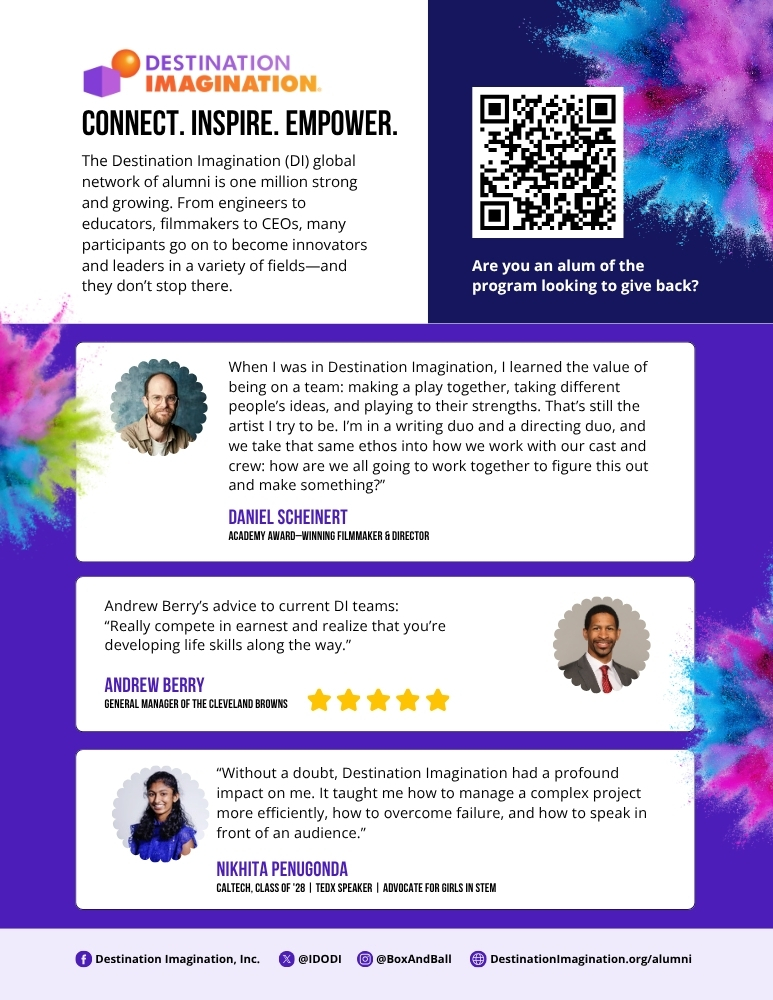 Looking for ways to promote DI in your community? Whether you are talking to teachers, school administrators, parents or just friends, these materials can help them understand what Destination Imagination is all about.